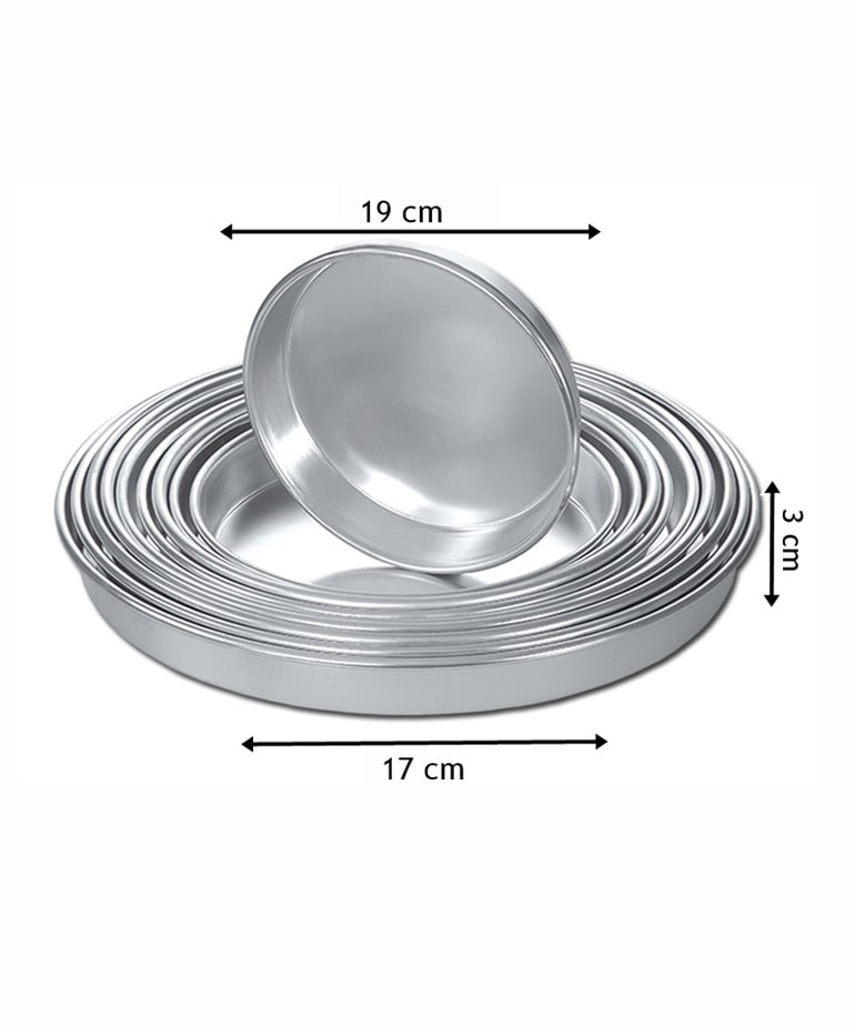 17 cm Alüminyum Yuvarlak Tepsi, %100 gıda sertifikalı alüminyumdan üretilmiştir. Yüksek ısı iletkenliği sayesinde baklavanın altı çıtır, üstü yumuşak pişer. Anti-yapışır yüzeyi ve 1.2 mm kalınlığı, uzun ömürlü kullanım sunar. İç içe geçen tasarımı sayesinde depolama alanından tasarruf sağlar.